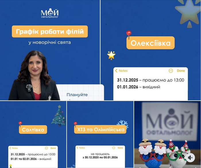 Графік роботи філій «Мій офтальмолог» на новорічні свята