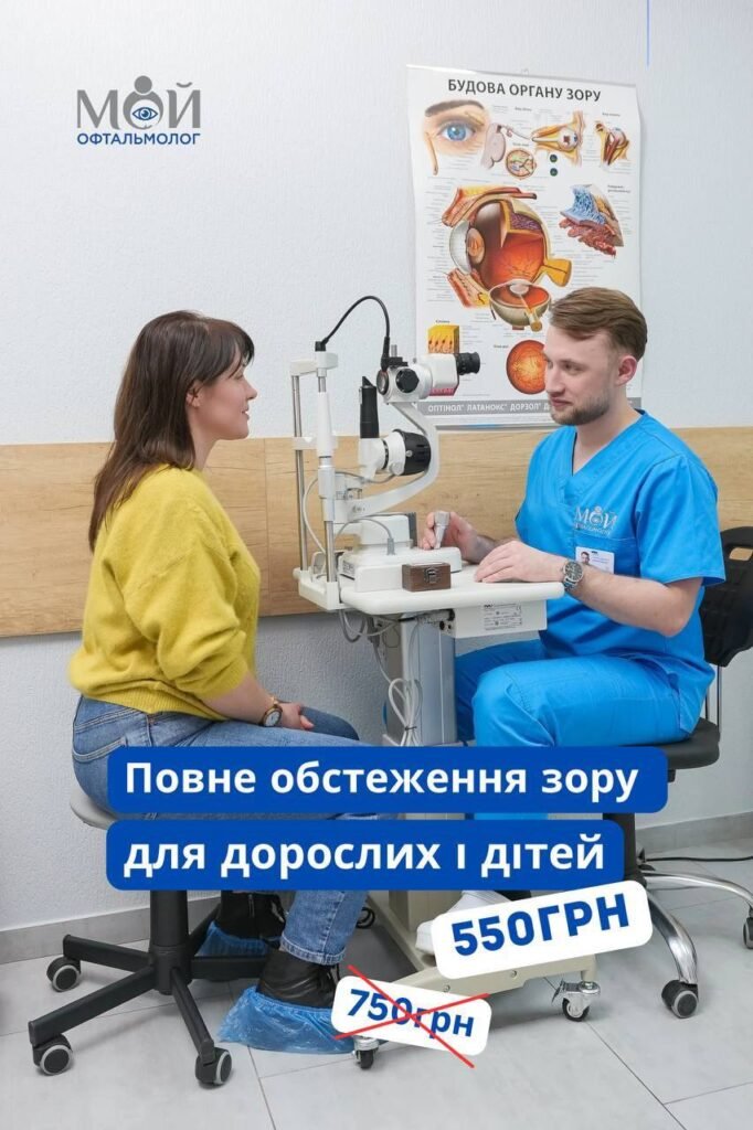 ? Підготуйтесь до Нового Року з турботою про зір! ? ? Повне обстеження зору для дорослих і дітей лише за 550 грн! ? Акція діє з 12.12.24 до 30.12.24. Чому обирають нас? ✅ Комплексне обстеження зору в одному місці – професійна діагностика та оптика. ✅ Сучасне обладнання поруч з вашим домом. ✅ Зручний запис без очікувань у чергах. ✅ Турботливий підхід до дітей – обстеження без стресу. ✅ Особистий офтальмолог, який пам’ятає вашу історію. ? Наші адреси: ✔️Нові Будинки: вул. Олімпійська, 11 ✔️ХТЗ: просп. Героїв Харкова, 272 Д ✔️Олексіївка: просп. Перемоги, 59 ✔️Салтівка: Ювілейний просп., 67 Б ? Запишіться вже сьогодні: 0507174040 | 0687174040 | 0937174040 ✨ Не відкладайте турботу про себе та близьких! Встигніть перевірити зір до Нового Року! Ваш медичний центр “Мій офтальмолог” ? ЗАПИСАТИСЯ НА ПРИЙОМ